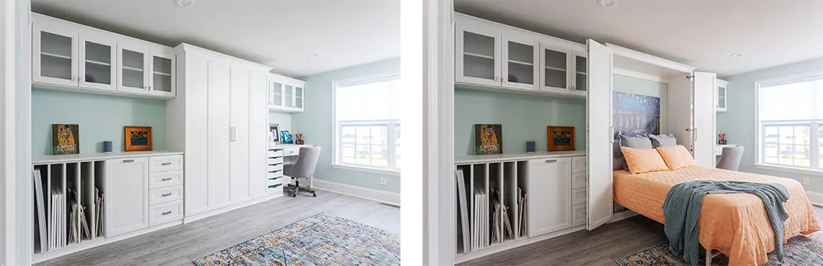 The owners of two- and three-bedroom apartments also think about how to accommodate visiting relatives, and friends. Need a comfortable place to sleep, but if you put a bed, most of the time it will just get in the way. And if there will be two children living in the nursery at the same time? To place two beds in this case and provide enough space for games is not possible. What is the solution? In all these cases, the best option would be a bed that retracts into the wall.